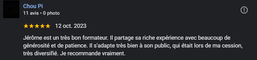 J'ai aidé des centaines de personnes au travers des formations en présentiel. Avec de très bons retours à chaque fois.